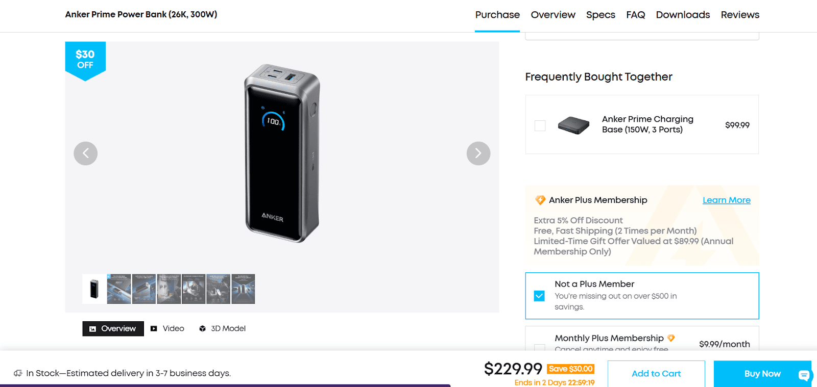 For example, Anker features a “Frequently Bought Together” section where, when a customer is purchasing a power bank, they show an option to add a charging base.