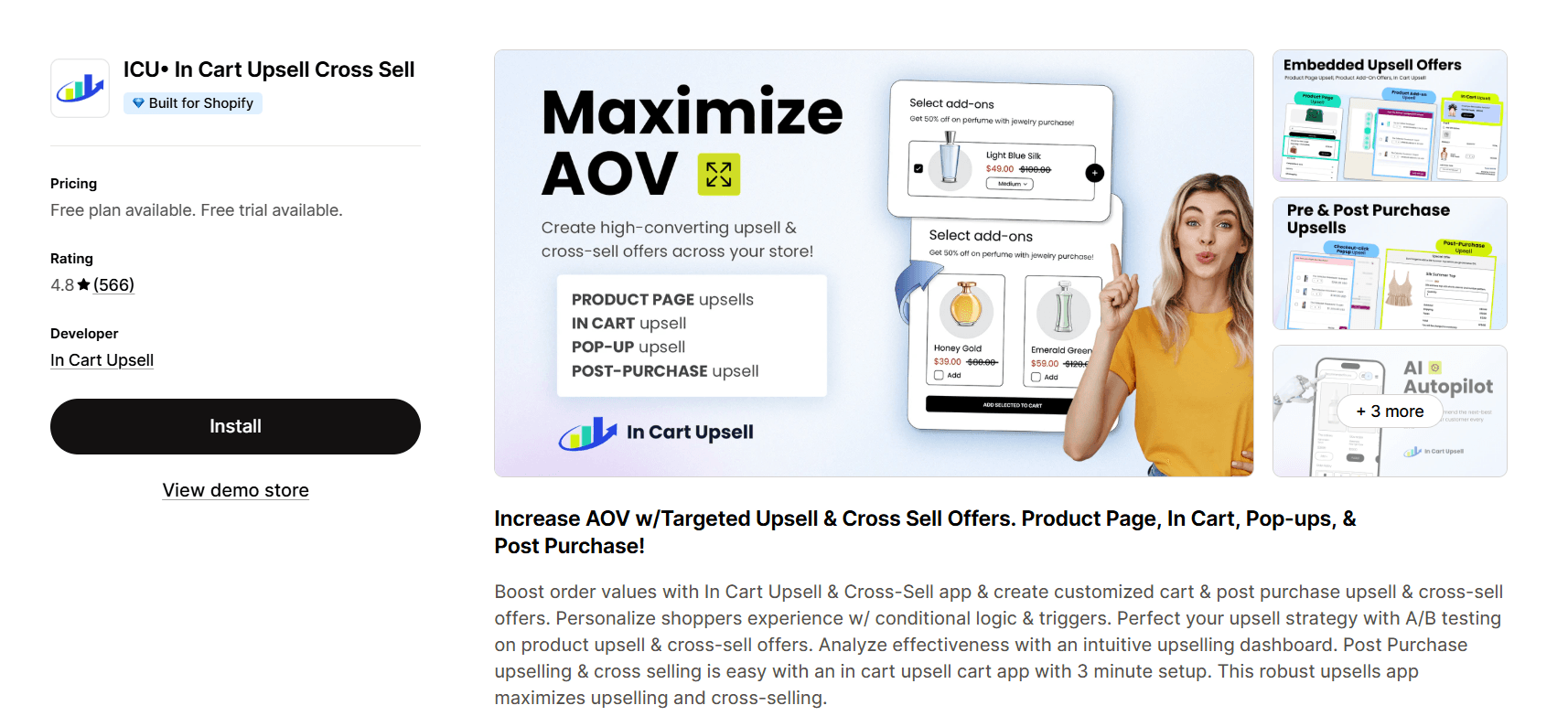 However, this app doesn't support post-purchase upsells, subscription-based offers, or advanced AI targeting, so it has a narrower use case.